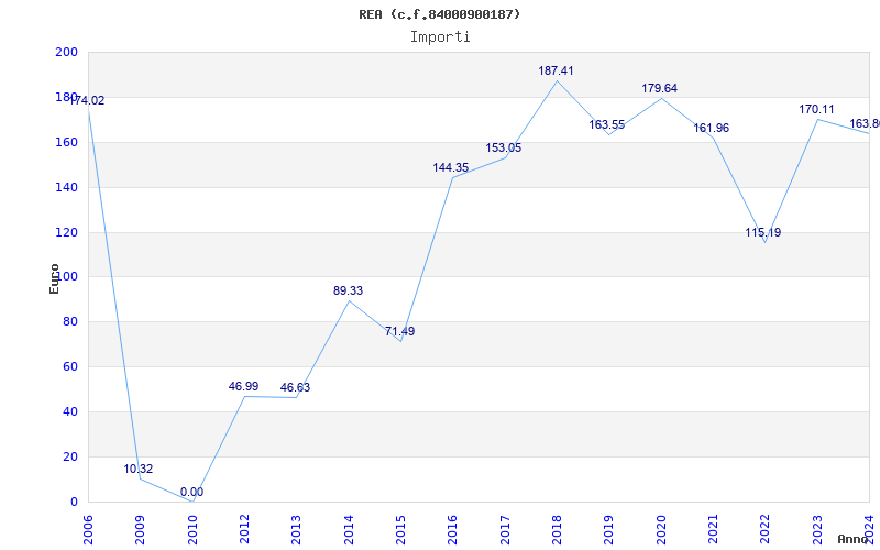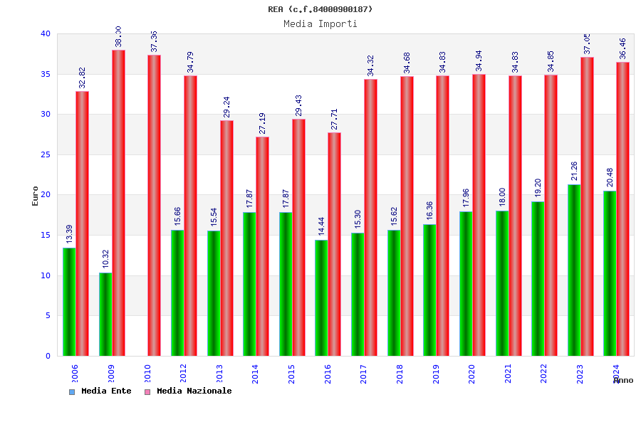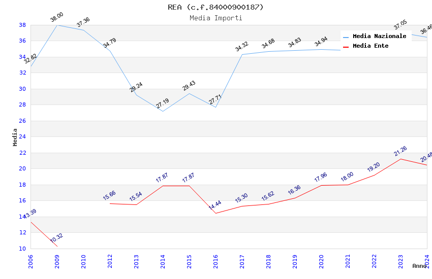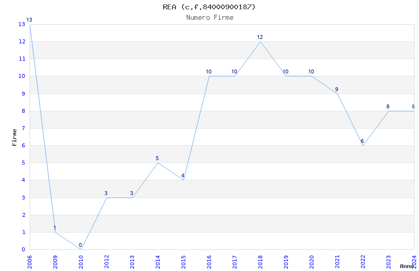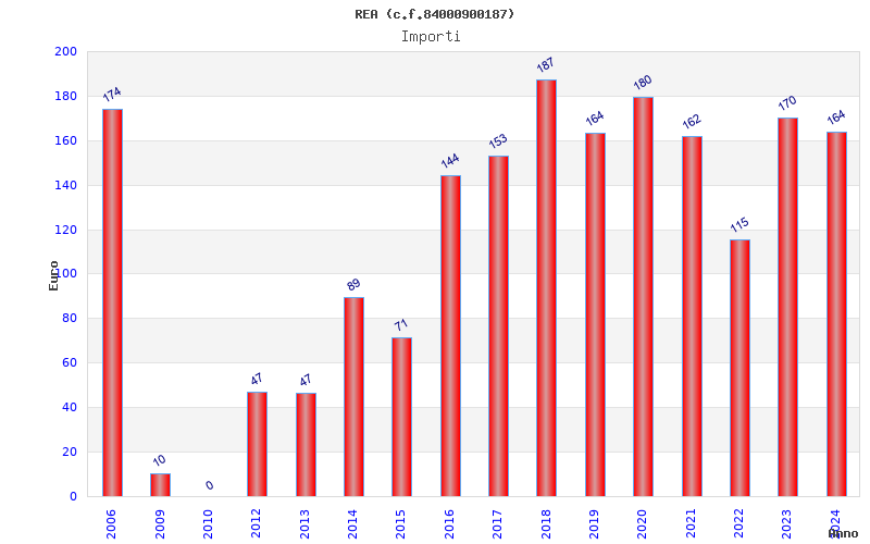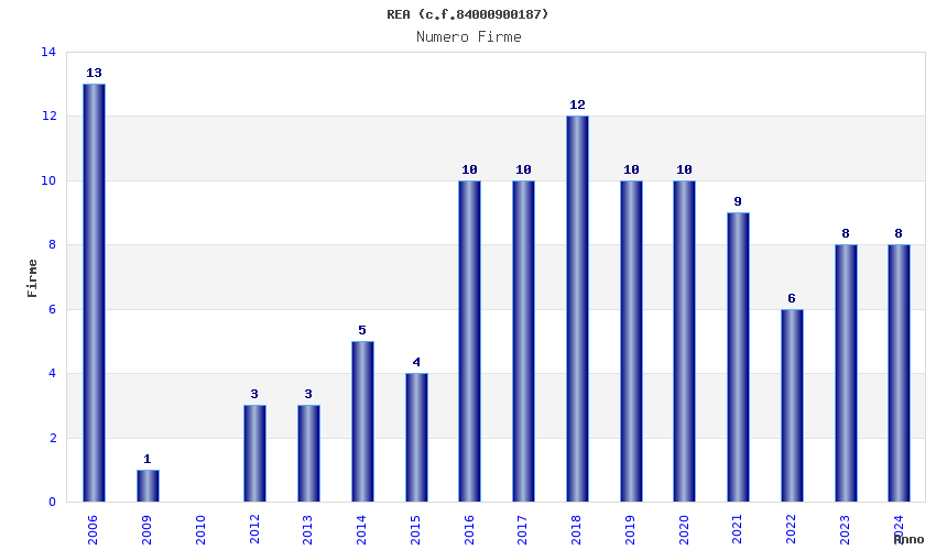 | Anno | Firme | Importi | Media | Naz. | Reg. | Prov. | Comu. |