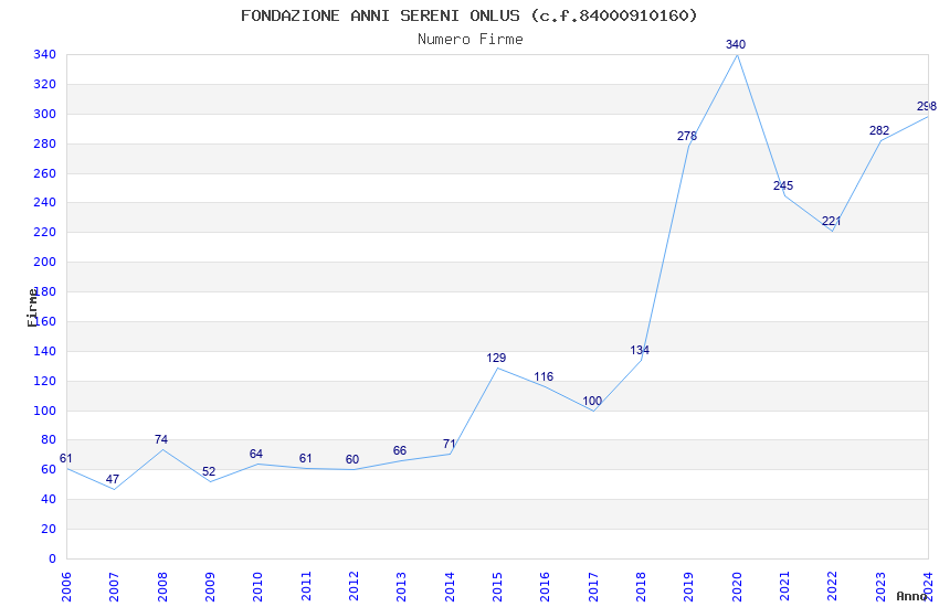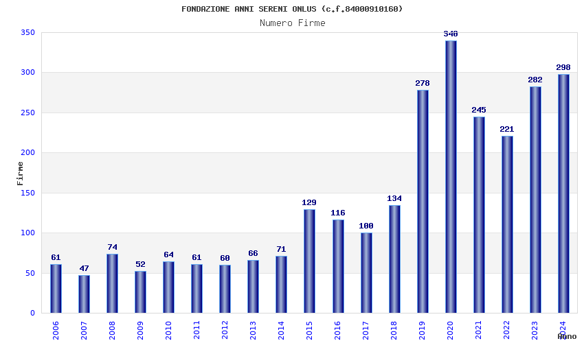 | Anno | Firme | Importi | Media | Naz. | Reg. | Prov. | Comu. |