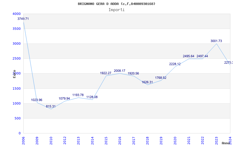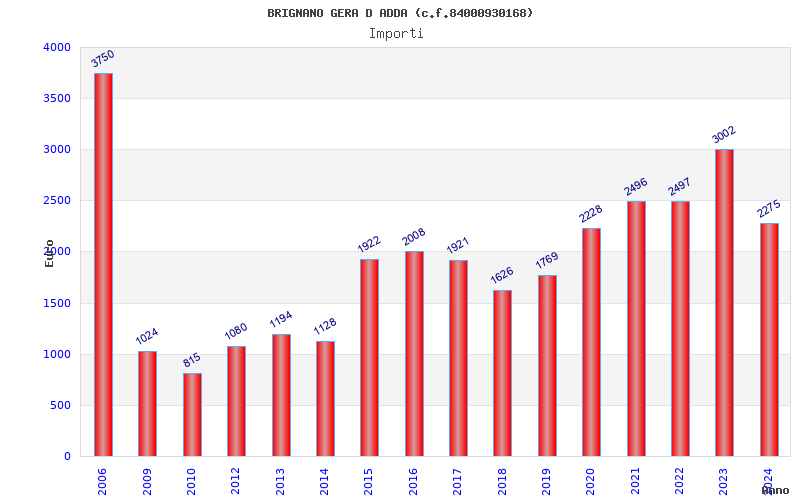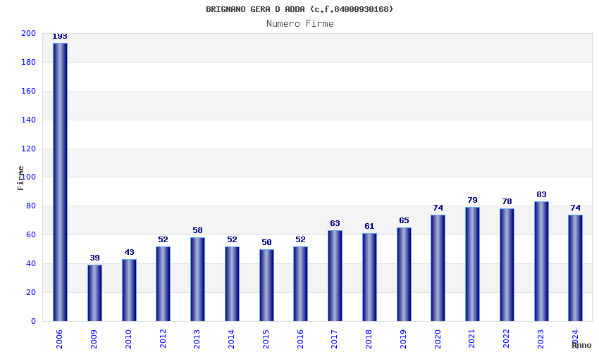 | Anno | Firme | Importi | Media | Naz. | Reg. | Prov. | Comu. |