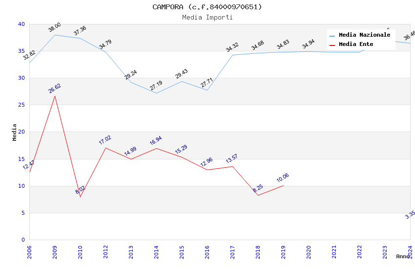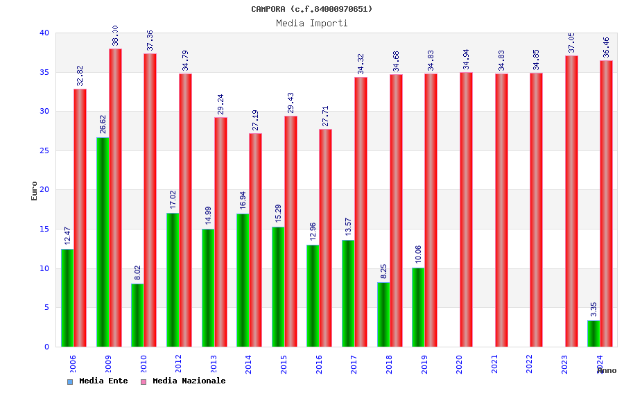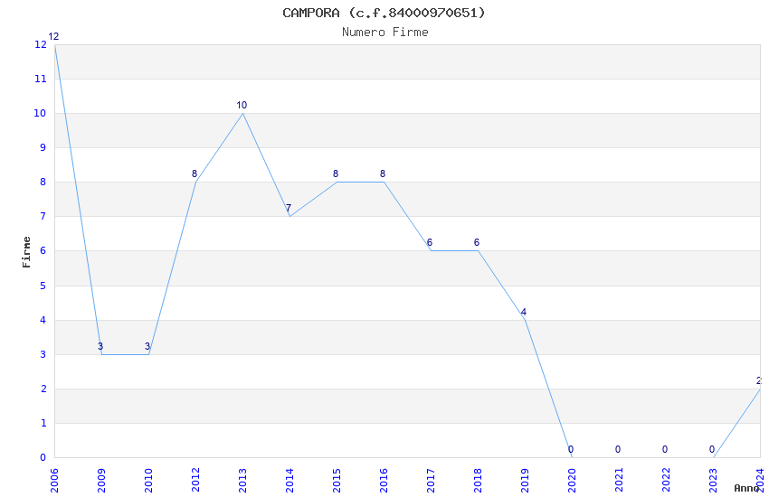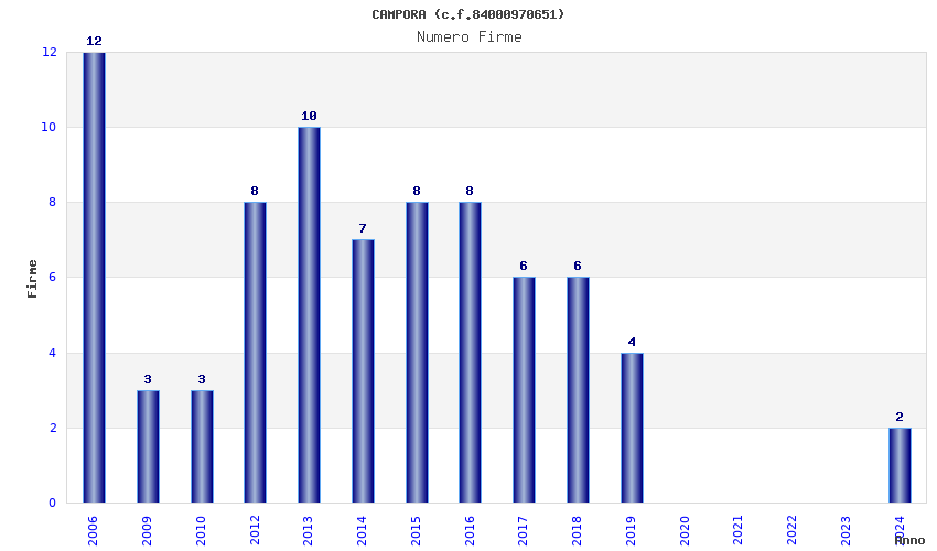 | Anno | Firme | Importi | Media | Naz. | Reg. | Prov. | Comu. |