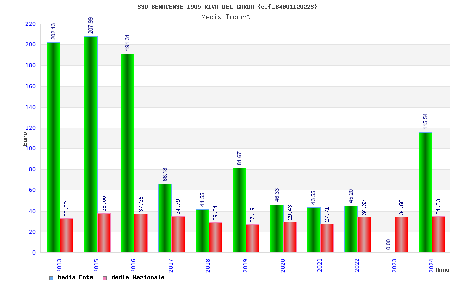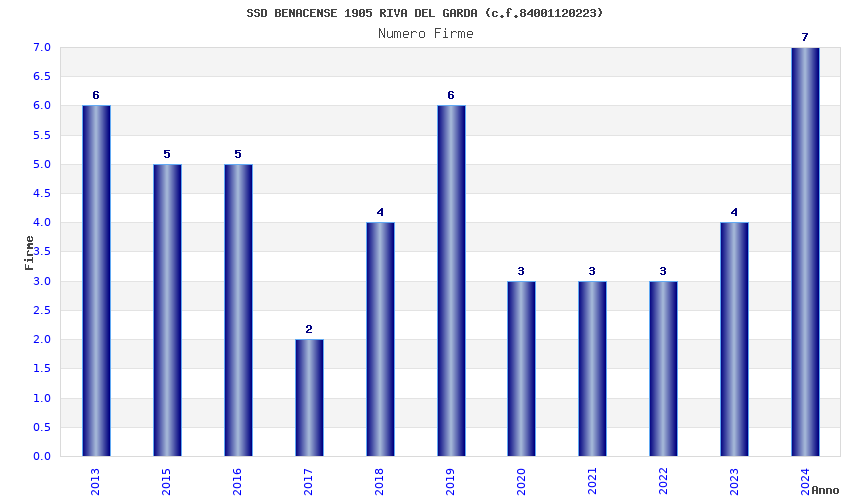 | Anno | Firme | Importi | Media | Naz. | Reg. | Prov. | Comu. |