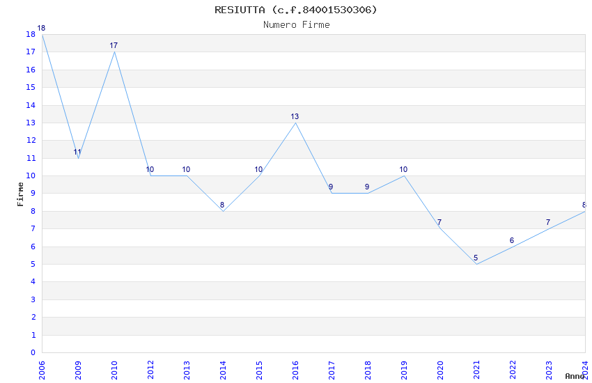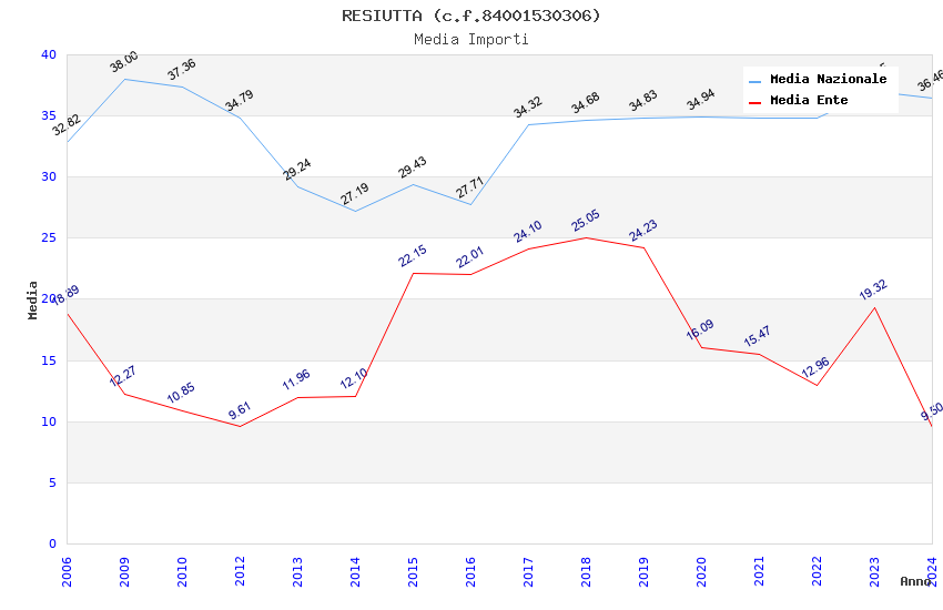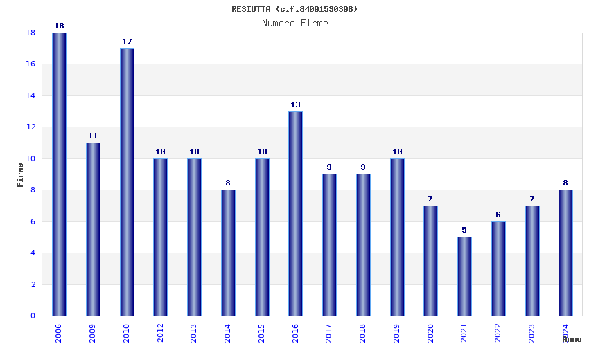 | Anno | Firme | Importi | Media | Naz. | Reg. | Prov. | Comu. |