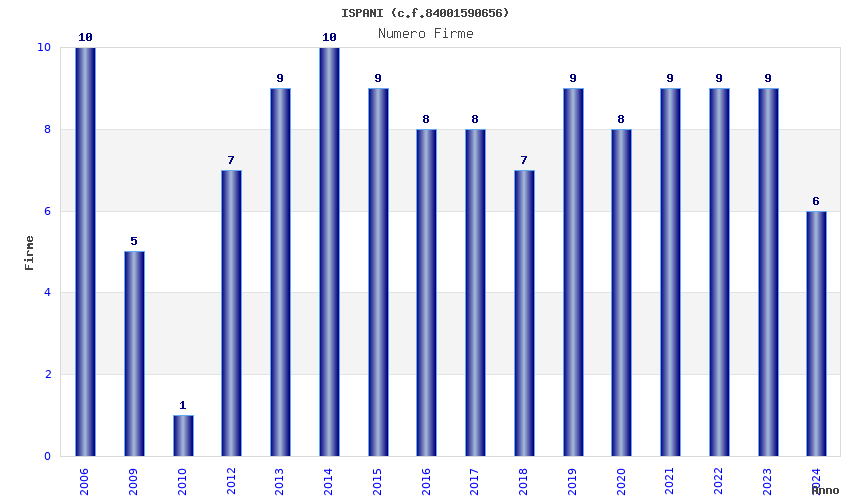 | Anno | Firme | Importi | Media | Naz. | Reg. | Prov. | Comu. |