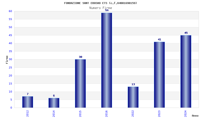 | Anno | Firme | Importi | Media | Naz. | Reg. | Prov. | Comu. |