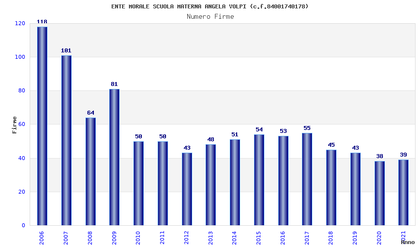 | Anno | Firme | Importi | Media | Naz. | Reg. | Prov. | Comu. |
