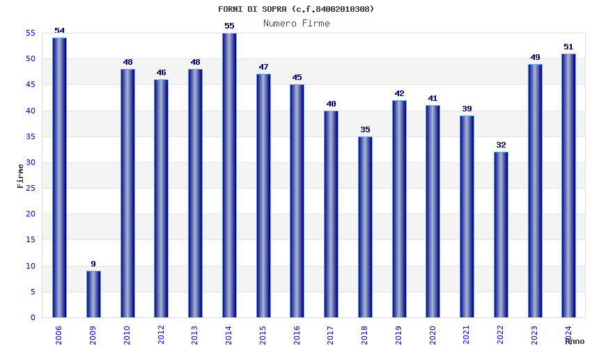 | Anno | Firme | Importi | Media | Naz. | Reg. | Prov. | Comu. |