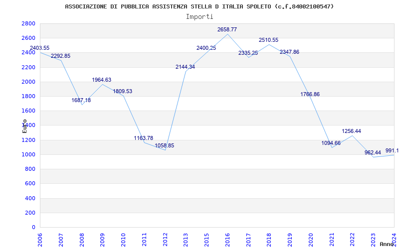 | Anno | Firme | Importi | Media | Naz. | Reg. | Prov. | Comu. |