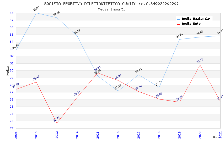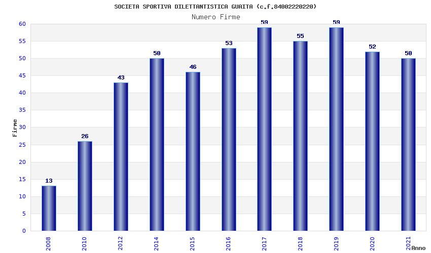 | Anno | Firme | Importi | Media | Naz. | Reg. | Prov. | Comu. |