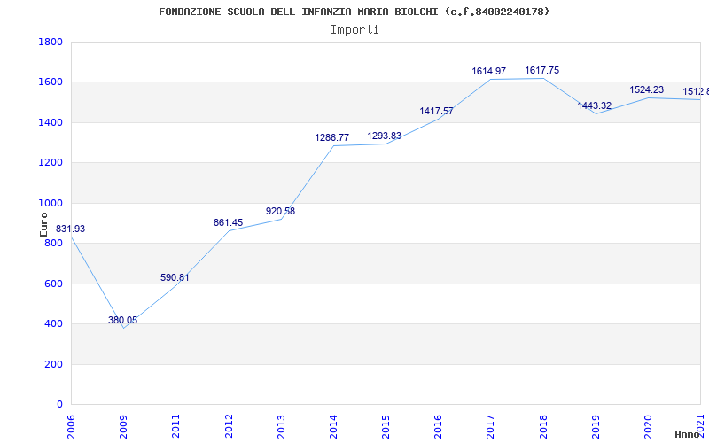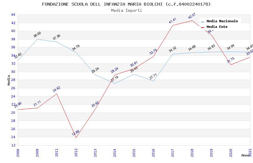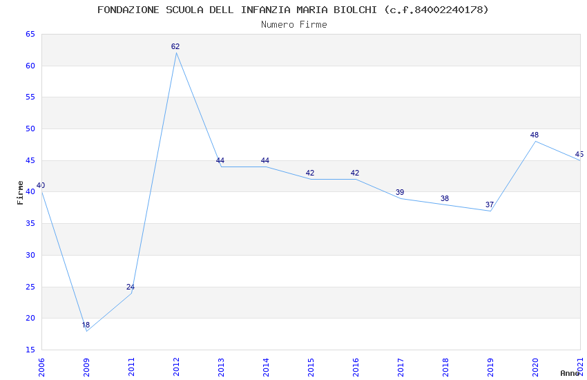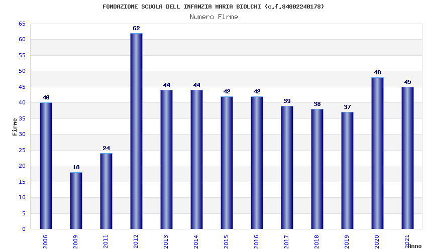 | Anno | Firme | Importi | Media | Naz. | Reg. | Prov. | Comu. |