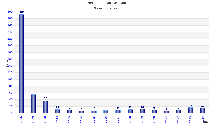 Anno Firme Importi Media Naz. Reg. Prov. Comu.