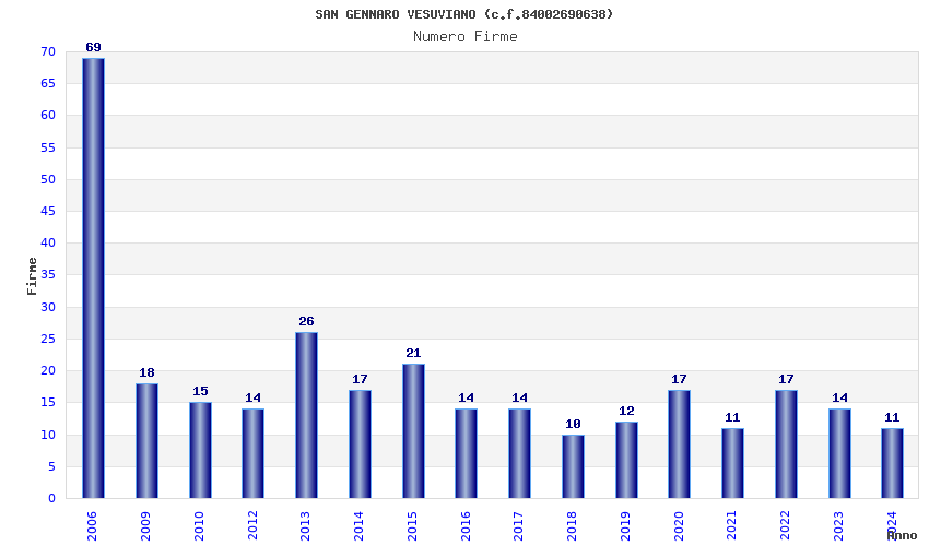 | Anno | Firme | Importi | Media | Naz. | Reg. | Prov. | Comu. |