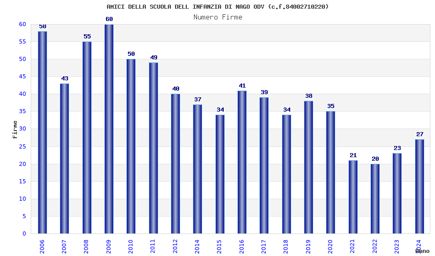 | Anno | Firme | Importi | Media | Naz. | Reg. | Prov. | Comu. |