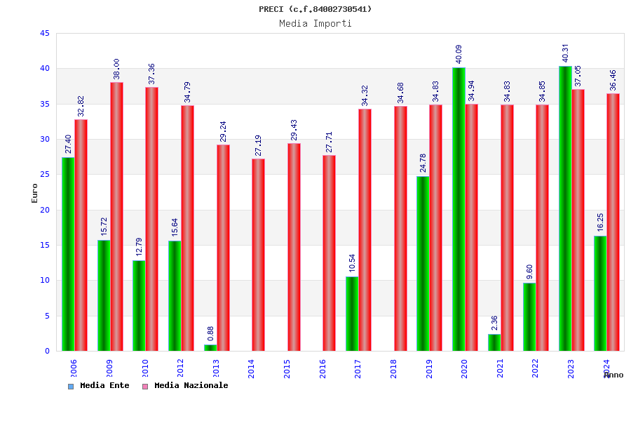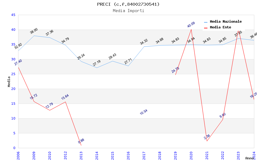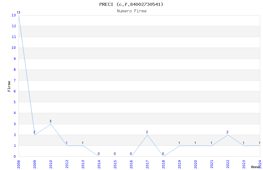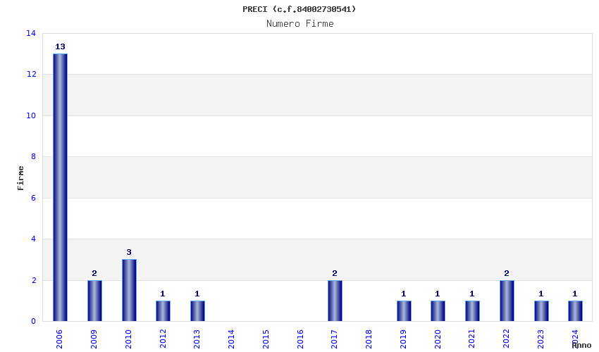 | Anno | Firme | Importi | Media | Naz. | Reg. | Prov. | Comu. |