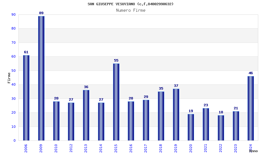 | Anno | Firme | Importi | Media | Naz. | Reg. | Prov. | Comu. |