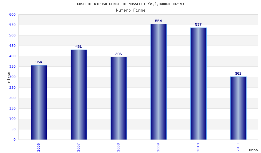 | Anno | Firme | Importi | Media | Naz. | Reg. | Prov. | Comu. |
