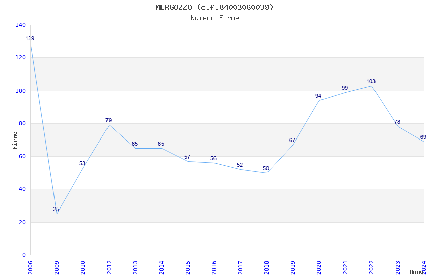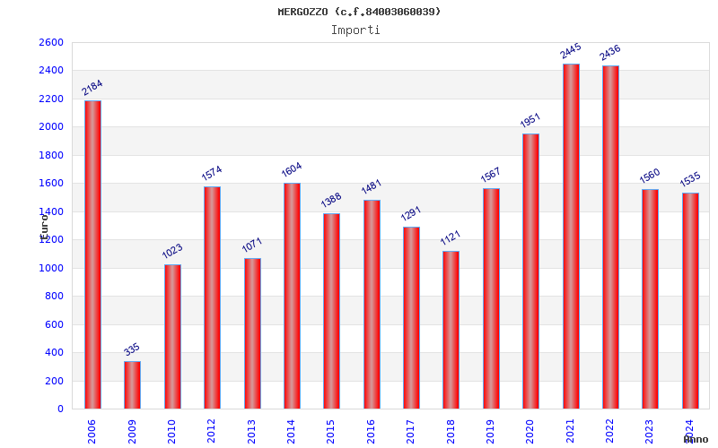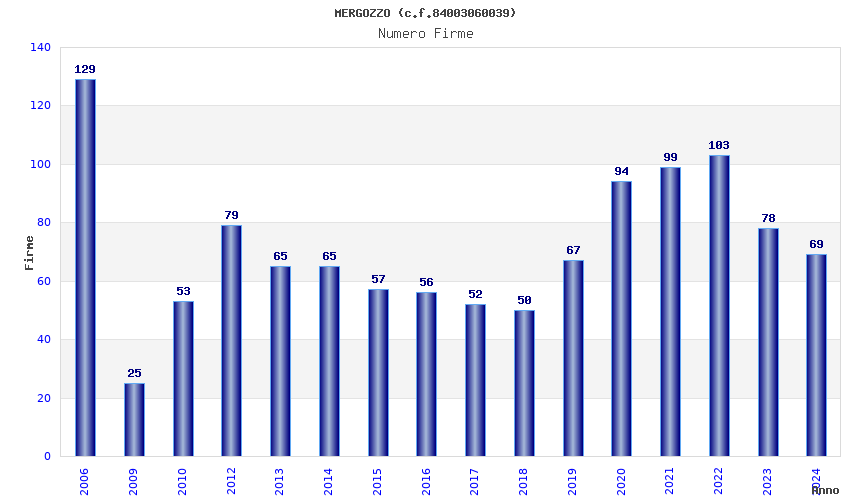 | Anno | Firme | Importi | Media | Naz. | Reg. | Prov. | Comu. |