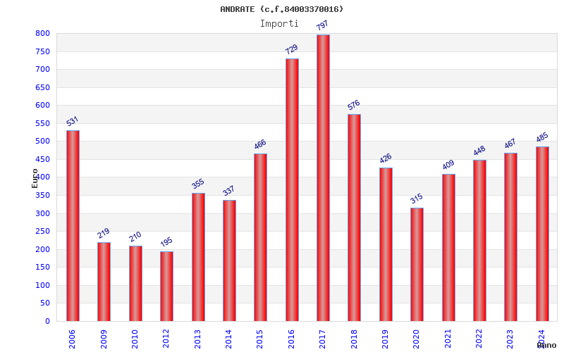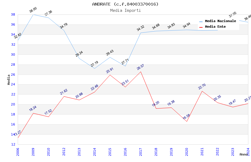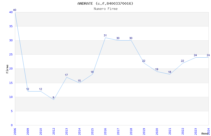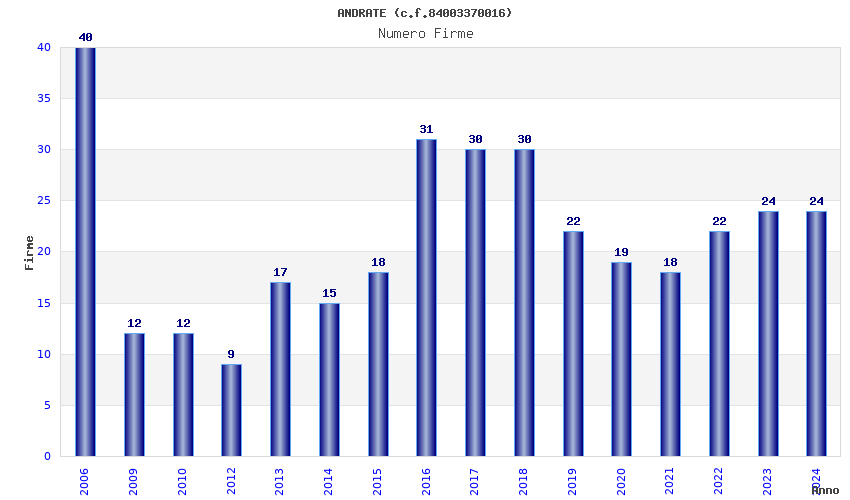 | Anno | Firme | Importi | Media | Naz. | Reg. | Prov. | Comu. |