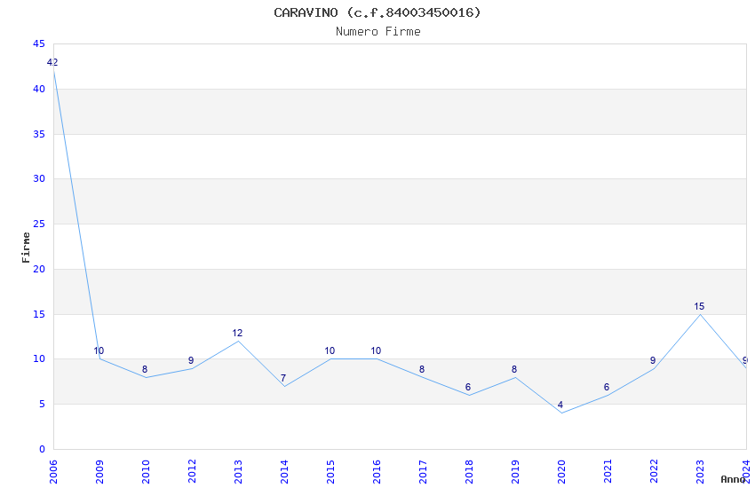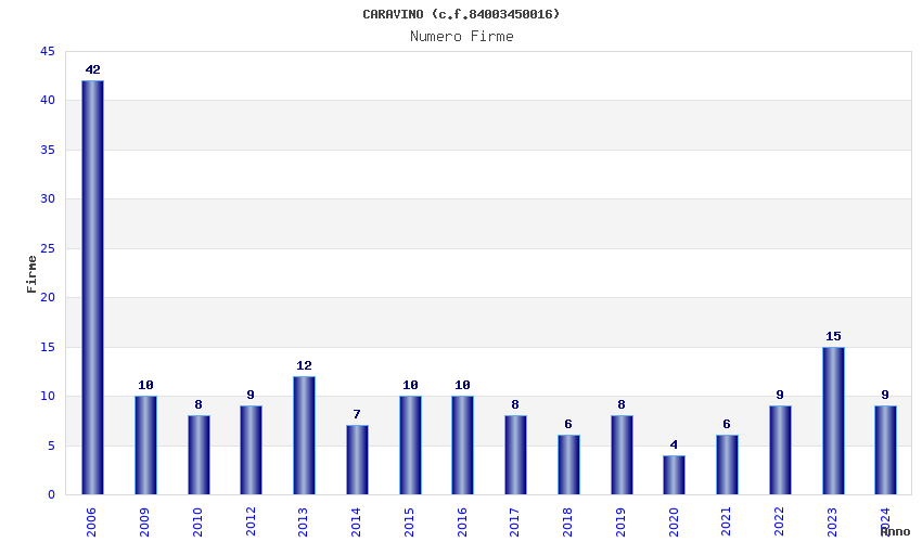 | Anno | Firme | Importi | Media | Naz. | Reg. | Prov. | Comu. |