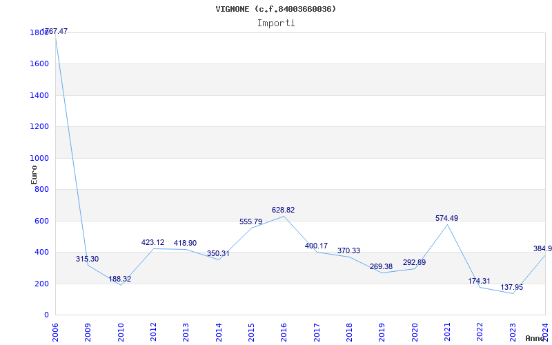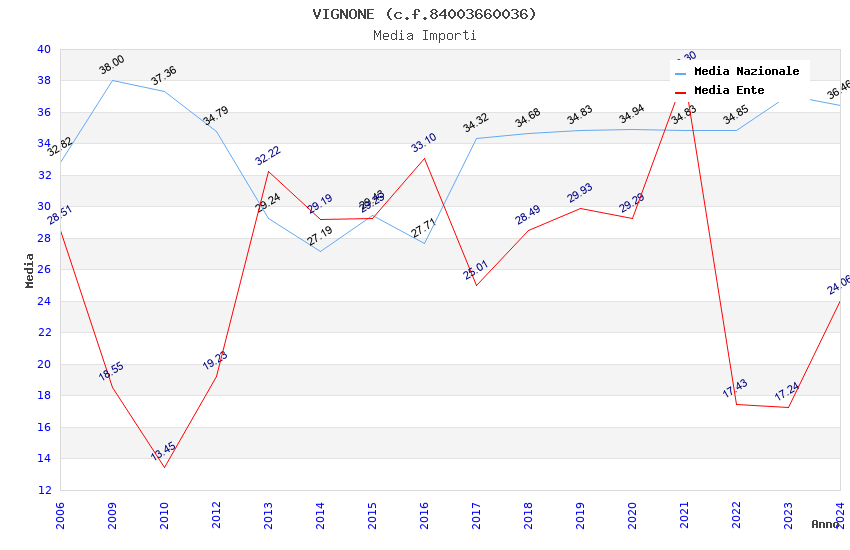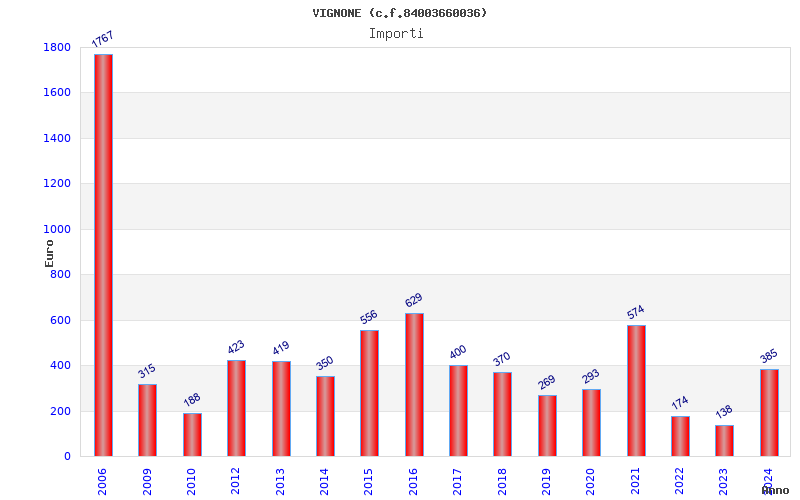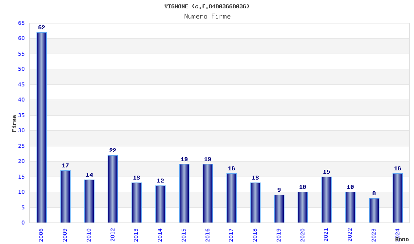 | Anno | Firme | Importi | Media | Naz. | Reg. | Prov. | Comu. |