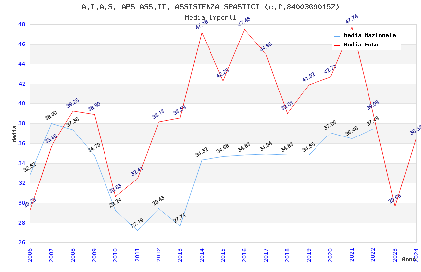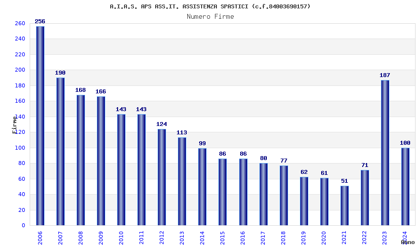 | Anno | Firme | Importi | Media | Naz. | Reg. | Prov. | Comu. |