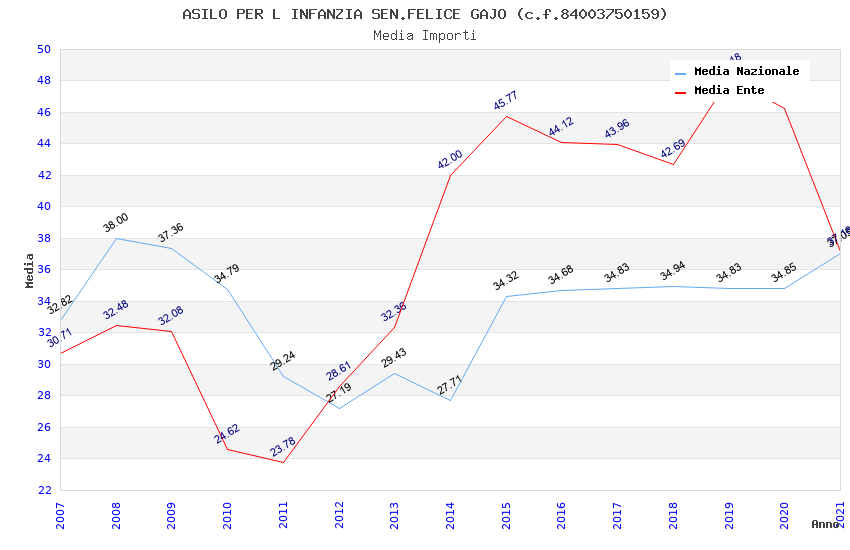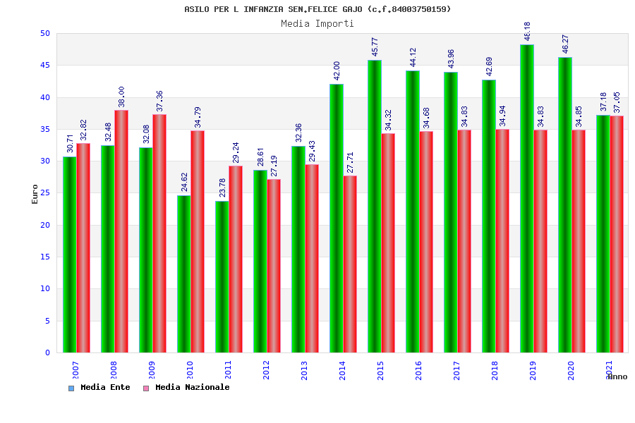 | Anno | Firme | Importi | Media | Naz. | Reg. | Prov. | Comu. |