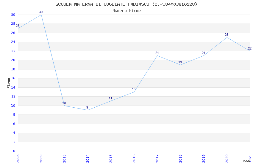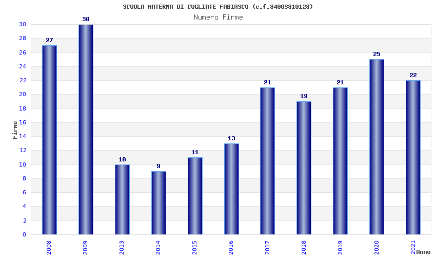 | Anno | Firme | Importi | Media | Naz. | Reg. | Prov. | Comu. |