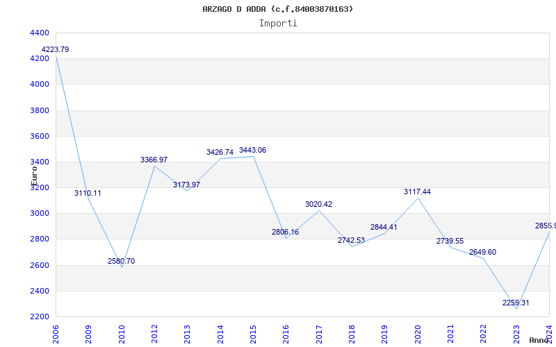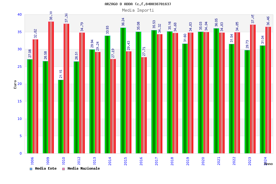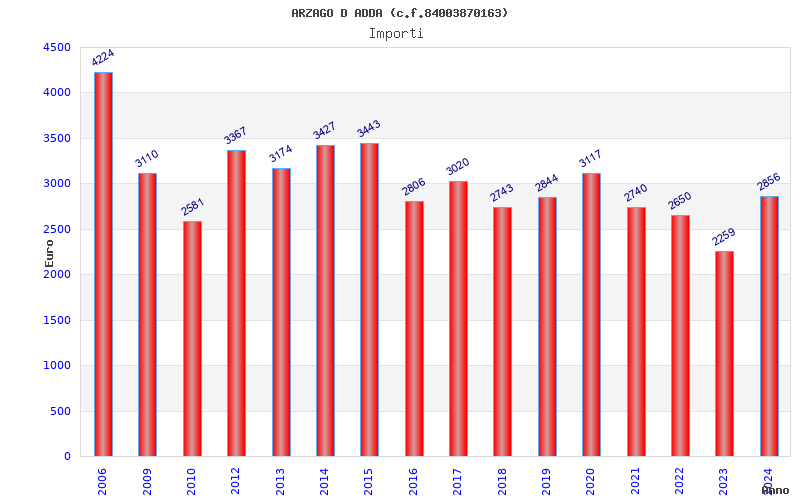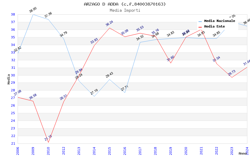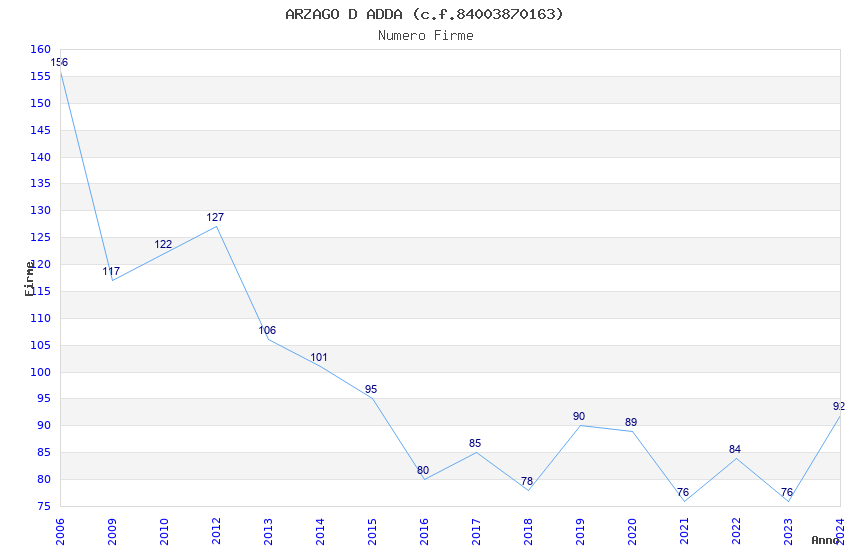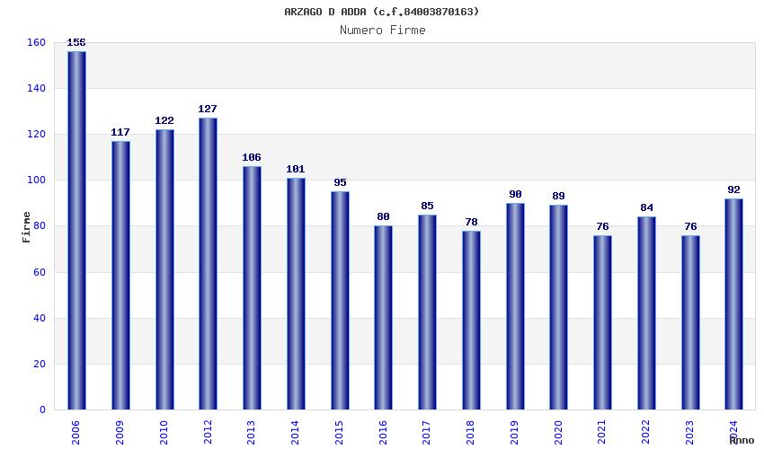 | Anno | Firme | Importi | Media | Naz. | Reg. | Prov. | Comu. |