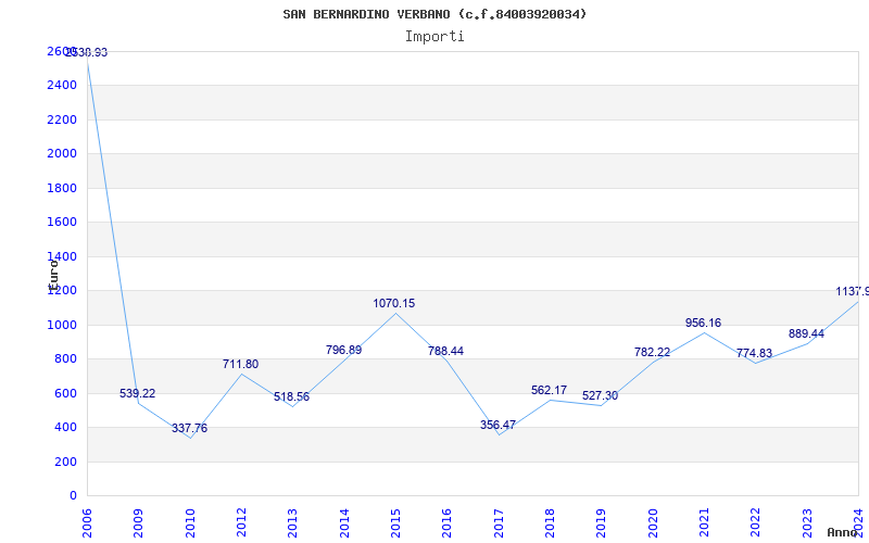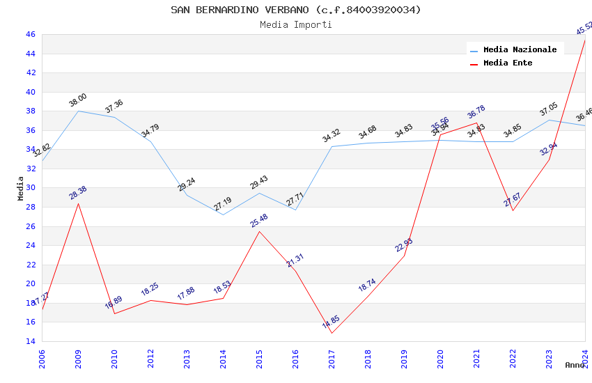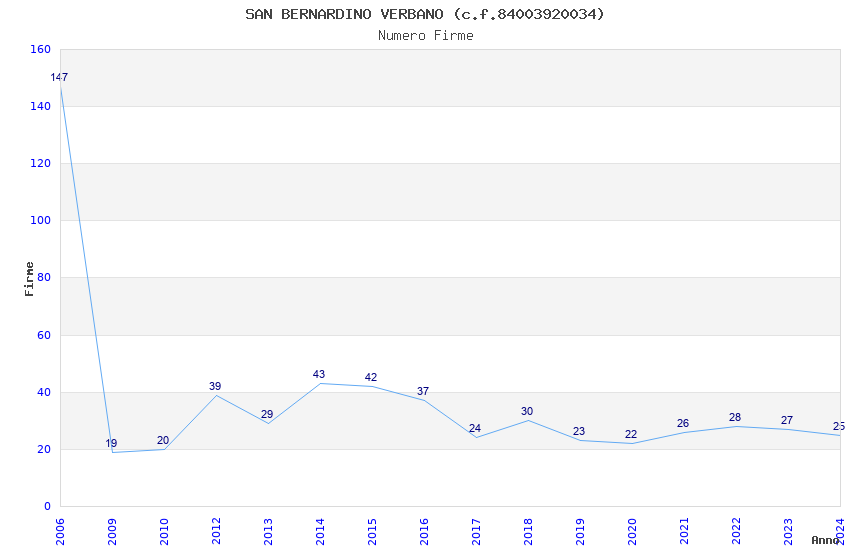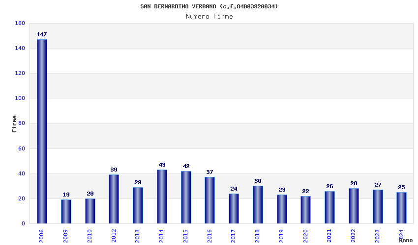 | Anno | Firme | Importi | Media | Naz. | Reg. | Prov. | Comu. |