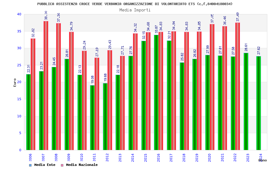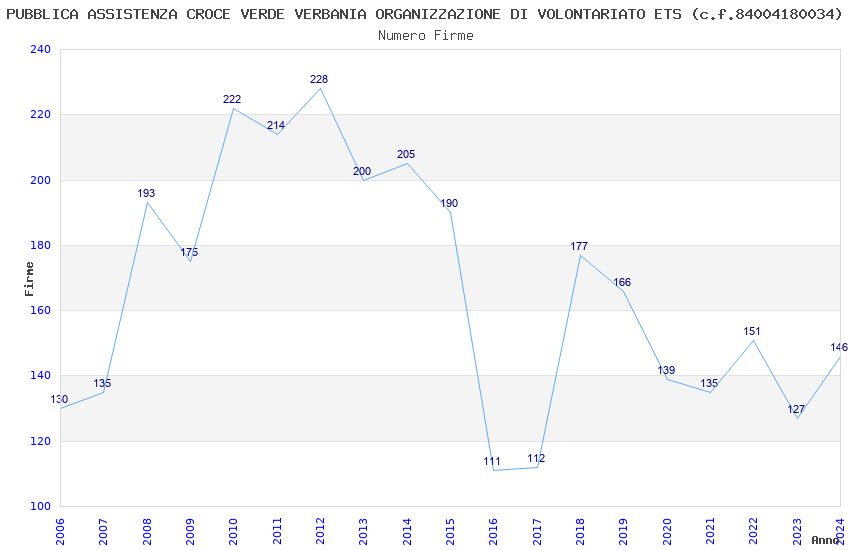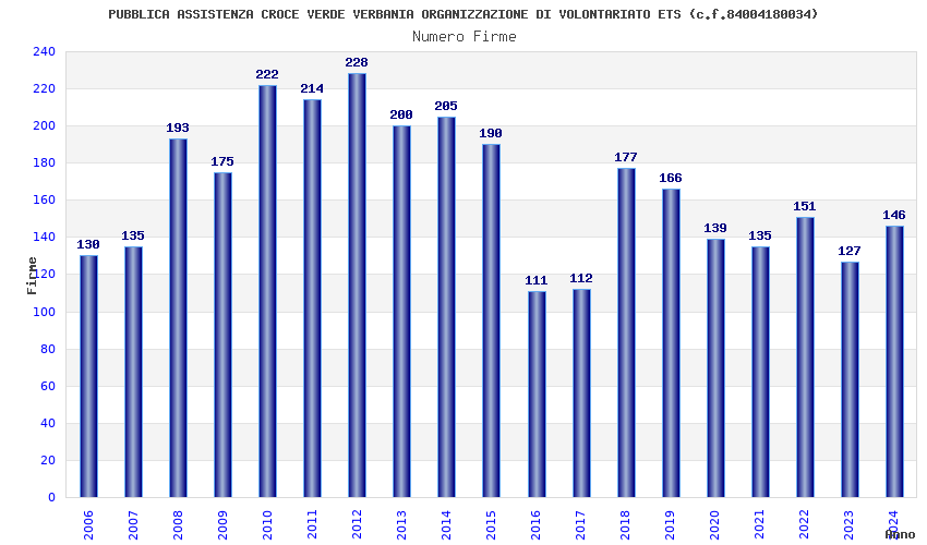 | Anno | Firme | Importi | Media | Naz. | Reg. | Prov. | Comu. |