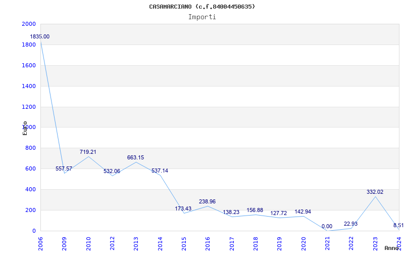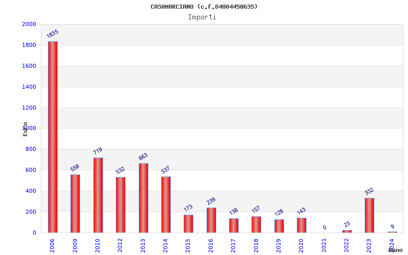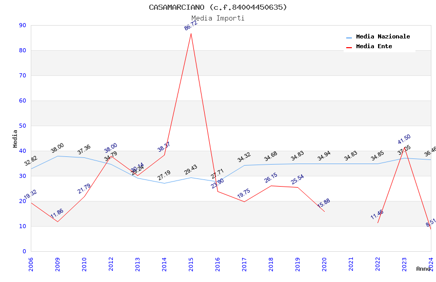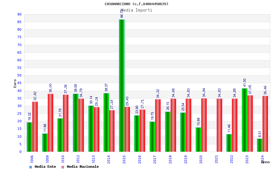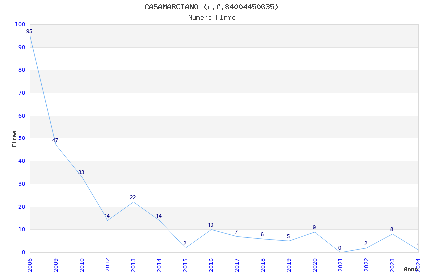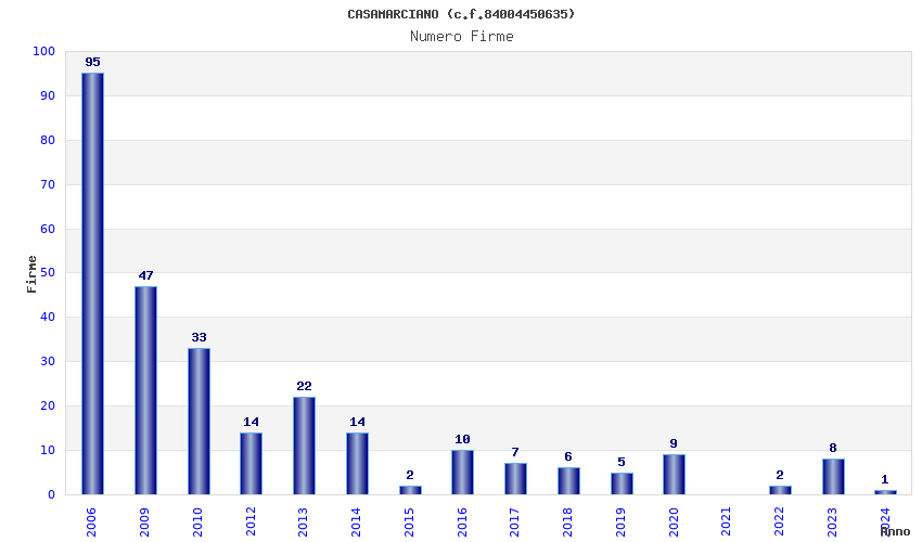 | Anno | Firme | Importi | Media | Naz. | Reg. | Prov. | Comu. |