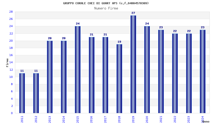 | Anno | Firme | Importi | Media | Naz. | Reg. | Prov. | Comu. |