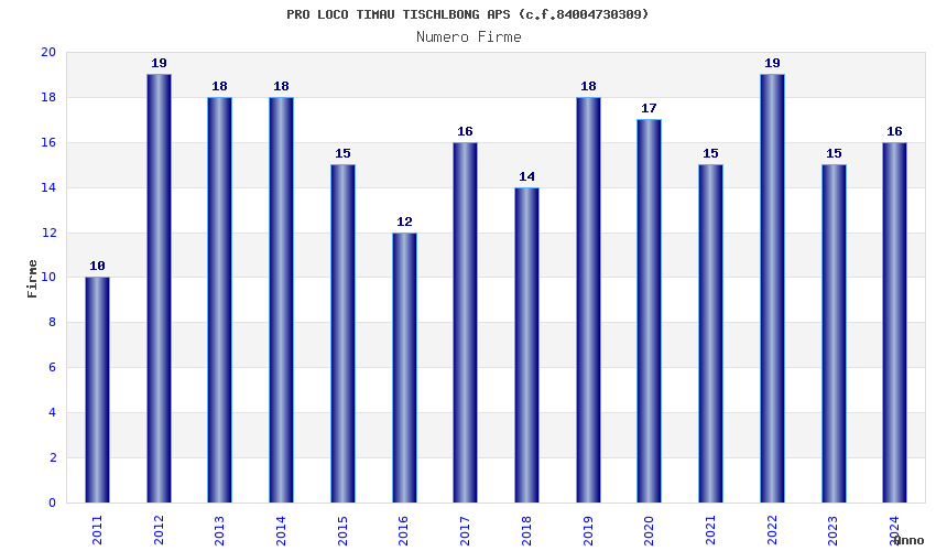 | 2012 | 19 | 261,29 | 13,75 | 38.946 | 1.137 | 510 | 3 |