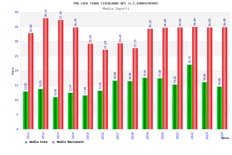 | Anno | Firme | Importi | Media | Naz. | Reg. | Prov. | Comu. |