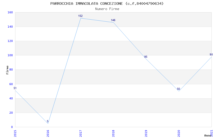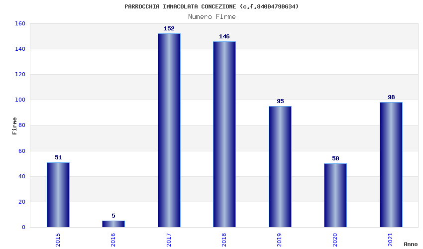 | Anno | Firme | Importi | Media | Naz. | Reg. | Prov. | Comu. |
