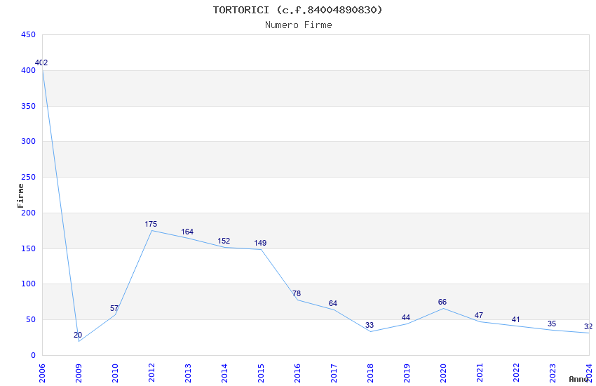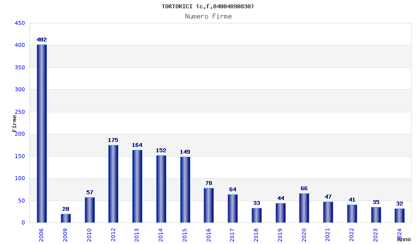 | Anno | Firme | Importi | Media | Naz. | Reg. | Prov. | Comu. |