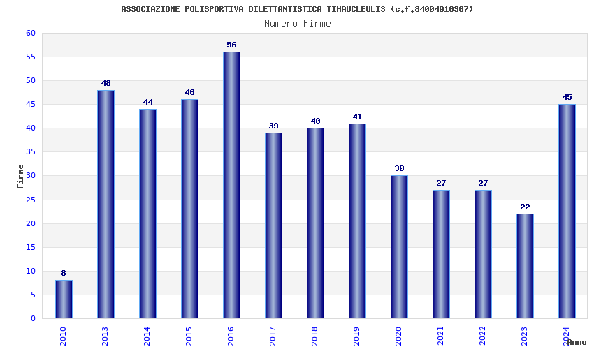 | Anno | Firme | Importi | Media | Naz. | Reg. | Prov. | Comu. |