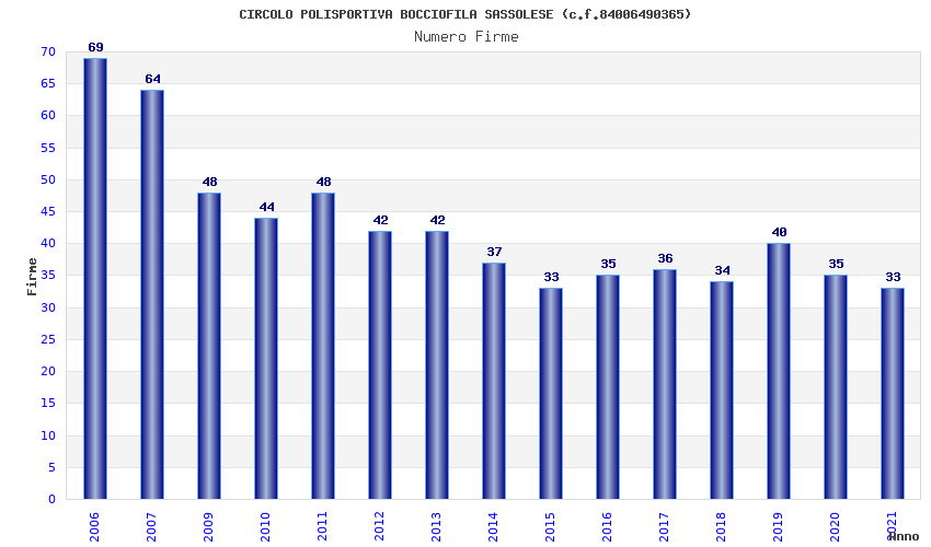| Anno | Firme | Importi | Media | Naz. | Reg. | Prov. | Comu. |