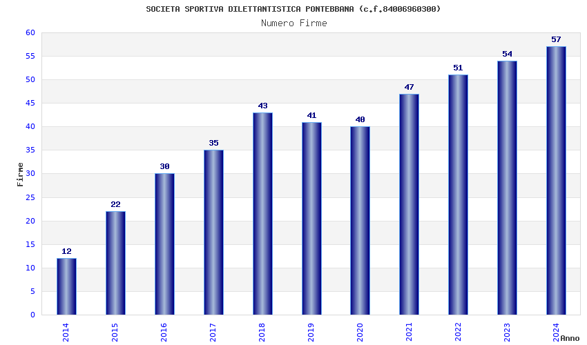 | Anno | Firme | Importi | Media | Naz. | Reg. | Prov. | Comu. |