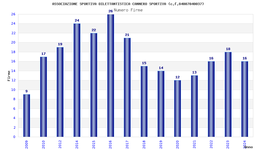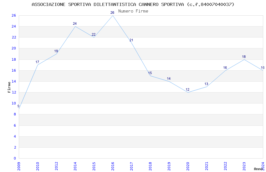 | 2016 | 26 | 677,35 | 26,05 | 38.007 | 3.377 | 131 | 1 |