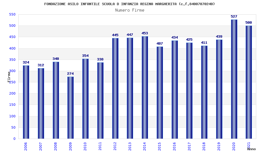 | Anno | Firme | Importi | Media | Naz. | Reg. | Prov. | Comu. |
