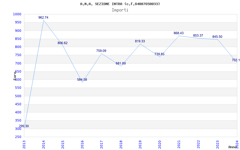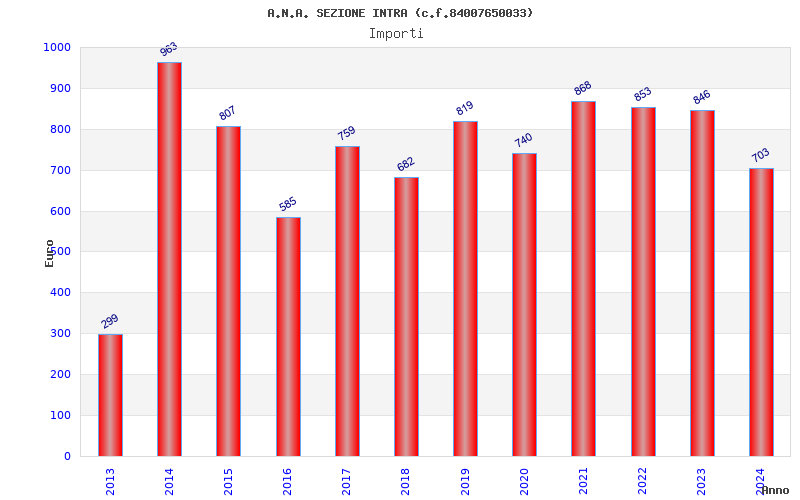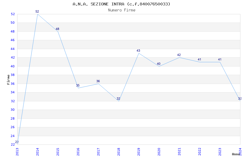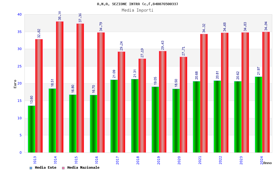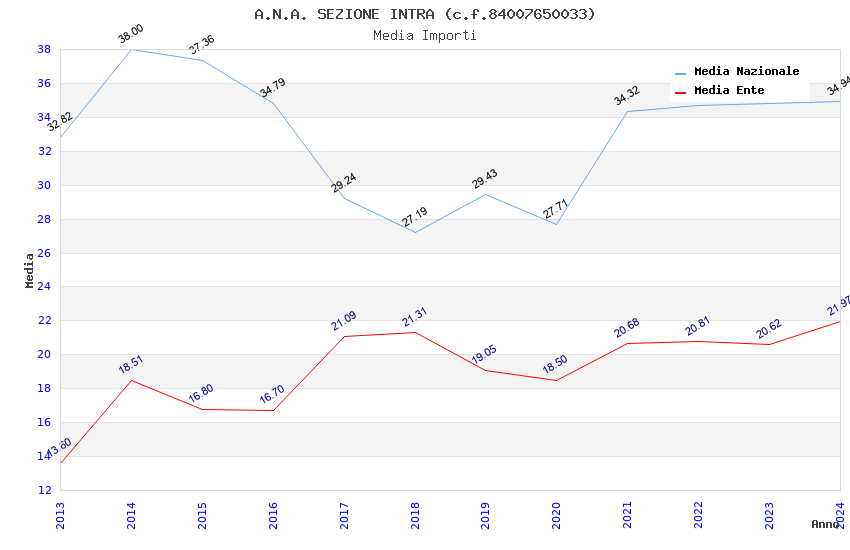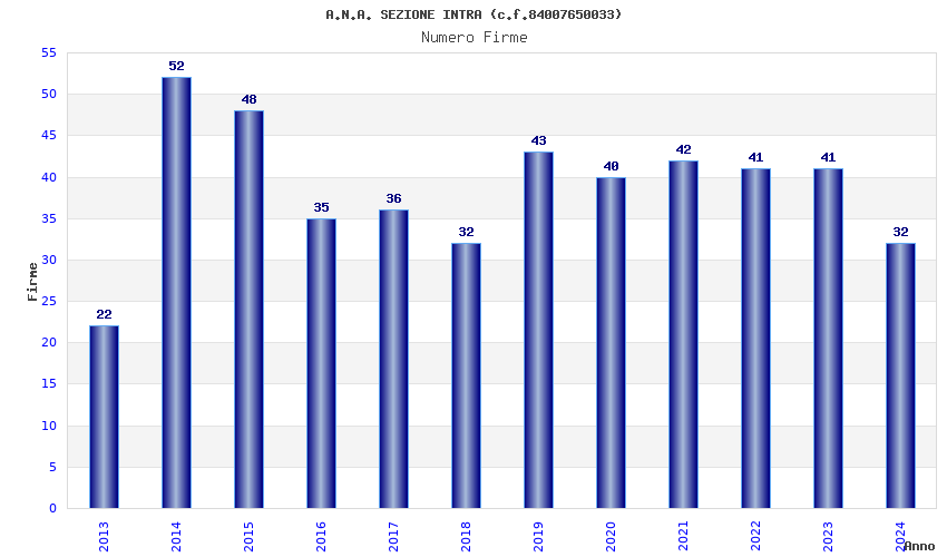 | Anno | Firme | Importi | Media | Naz. | Reg. | Prov. | Comu. |