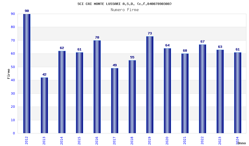 | 2019 | 73 | 3.884,27 | 53,21 | 14.120 | 295 | 134 | 1 |