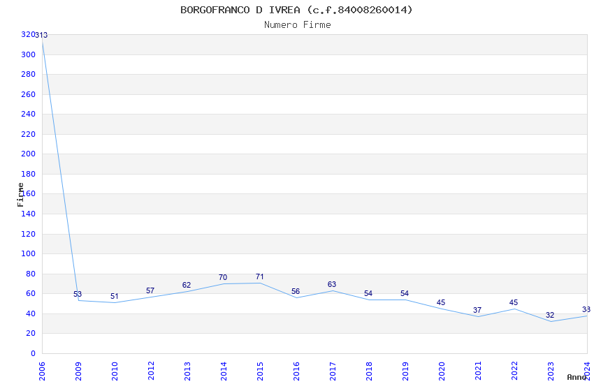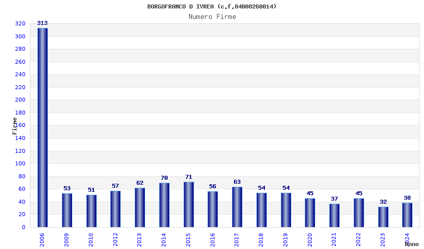 | Anno | Firme | Importi | Media | Naz. | Reg. | Prov. | Comu. |