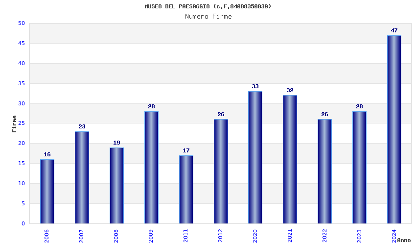 | Anno | Firme | Importi | Media | Naz. | Reg. | Prov. | Comu. |