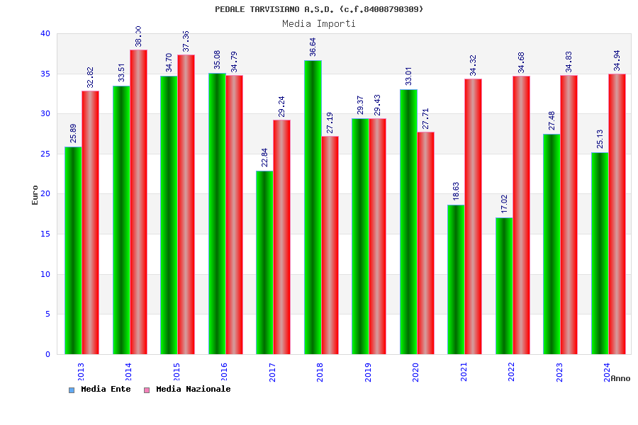 | Anno | Firme | Importi | Media | Naz. | Reg. | Prov. | Comu. |