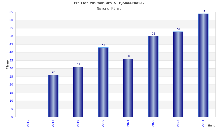 | Anno | Firme | Importi | Media | Naz. | Reg. | Prov. | Comu. |