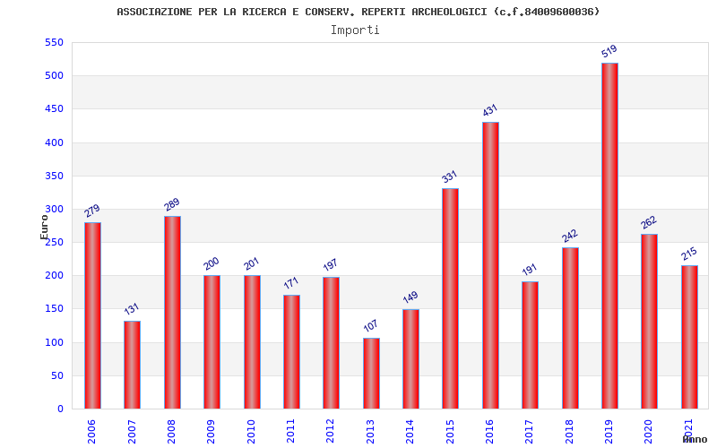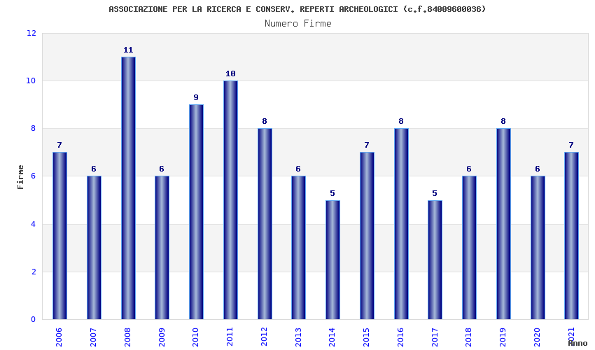| Anno | Firme | Importi | Media | Naz. | Reg. | Prov. | Comu. |