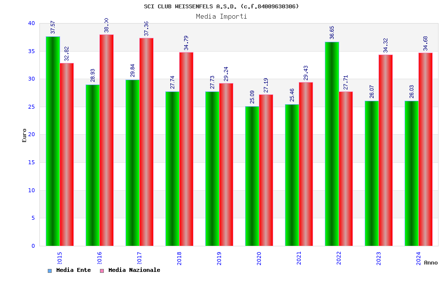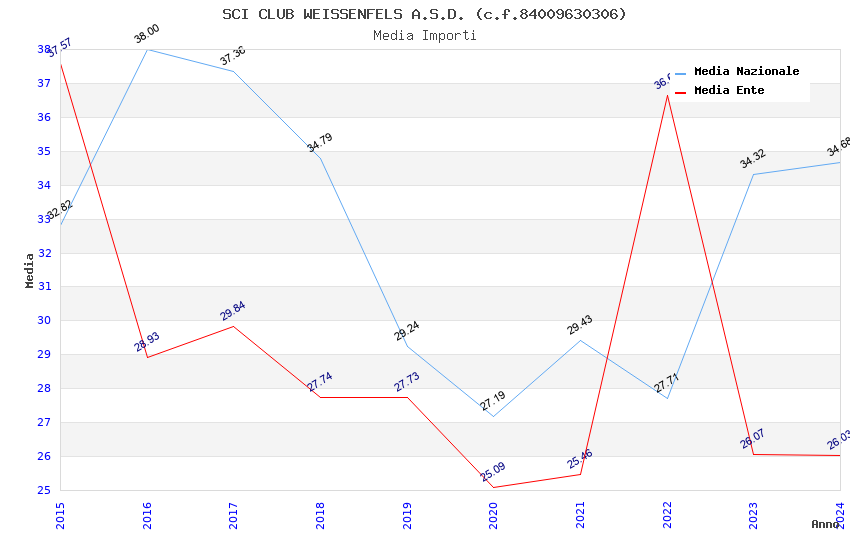 | Anno | Firme | Importi | Media | Naz. | Reg. | Prov. | Comu. |
