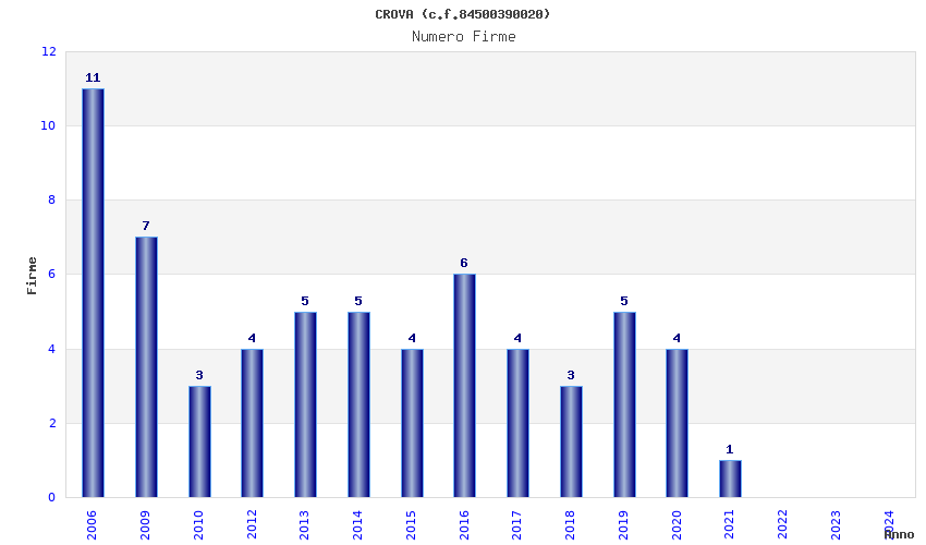 | Anno | Firme | Importi | Media | Naz. | Reg. | Prov. | Comu. |