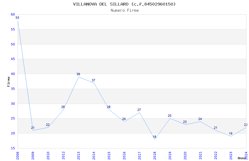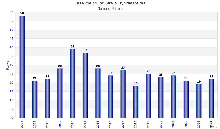 | Anno | Firme | Importi | Media | Naz. | Reg. | Prov. | Comu. |